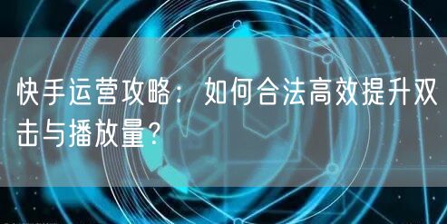 快手运营攻略:如何合法高效提升双击与播放量?