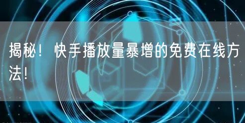 揭秘!快手播放量暴增的免费在线方法!