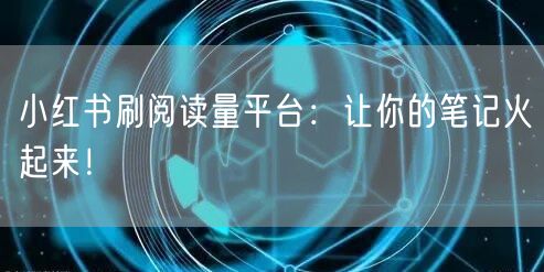 小红书刷阅读量平台:让你的笔记火起来!